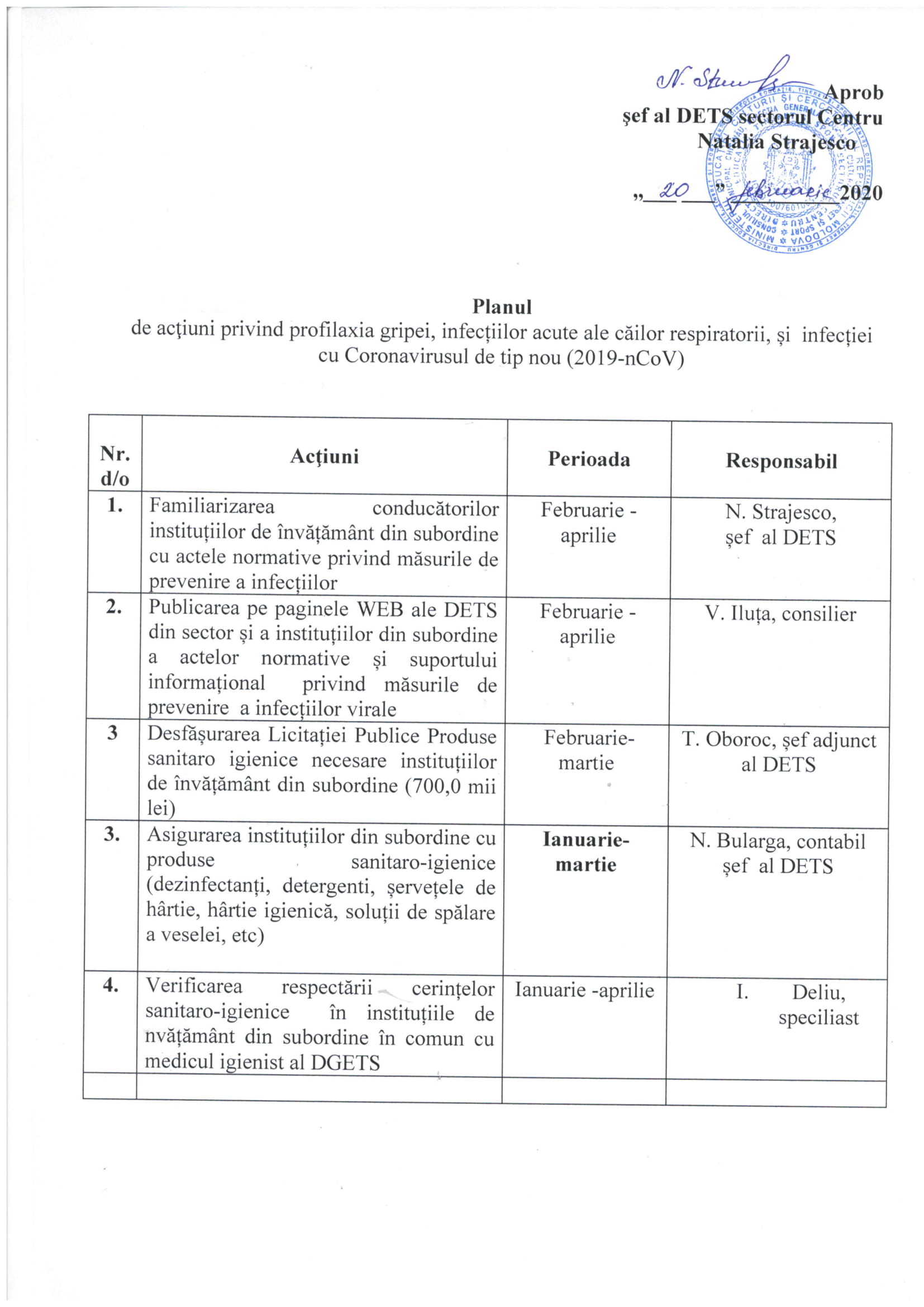 Planul de acțiuni privind profilaxia gripei, infecțiilor acute аlе сăilоr respiratorii, și infecției сu Coronavirusul de tip nou