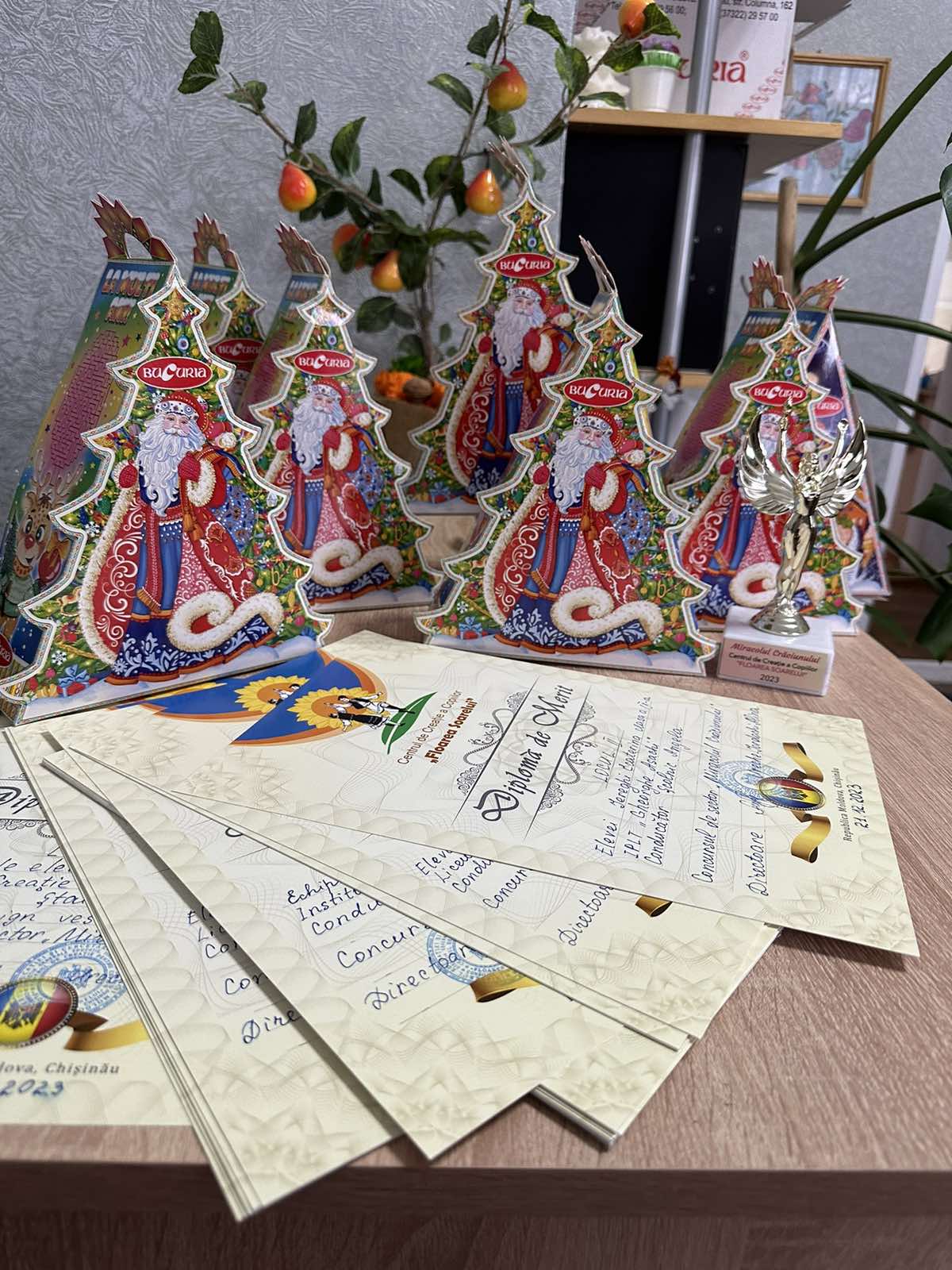 Astăzi s-au ales învingătorii, iar pentru înaltă creativitate și originalitate, îndemânare, străduință și dibăcie a copiilor, pentru capacitate de a genera idei cât mai îndrăznețe și de a aplica tehnici cât mai variate în procesul de creație a lucrărilor manuale de iarnă, deținătorii Premiului Mare, locul I,II și III s-au ales cu diplome, trofee și cadouri dulci din partea Direcției.