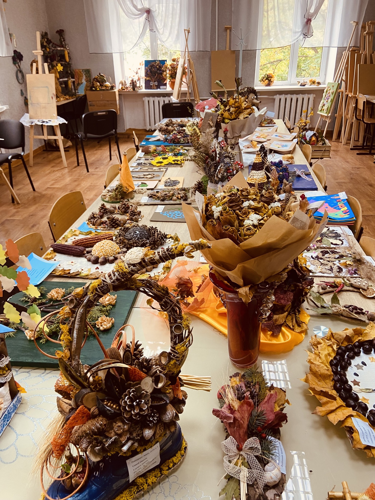 Lucrările originale ale elevilor, care au fost expuse pentru a fi apreciate de comisia de jurizare, au fost confecționate din materiale naturale pentru a ilustra frumusețea și bogăția toamnei pe plaiurile Moldovei.